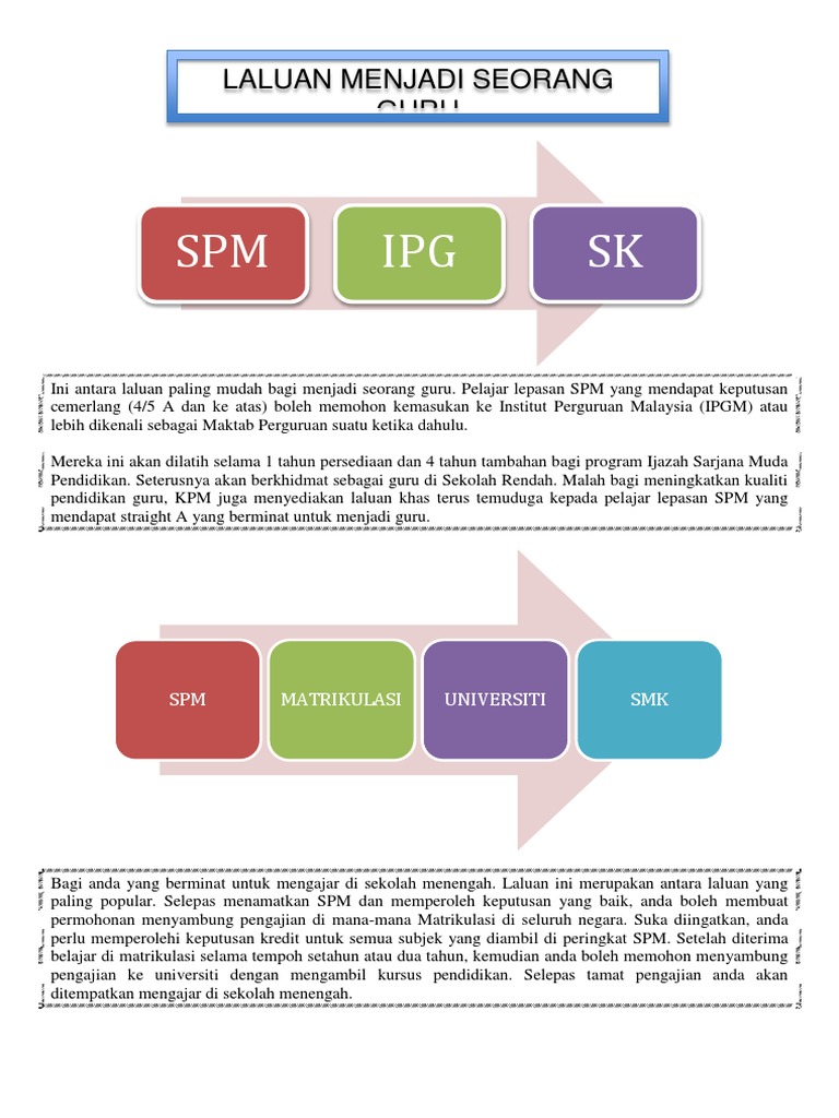 Kebanyakan pelajar lepasan SPM masih tercari-cari destinasi dan hala tuju kerjaya masing-masing selepas SPM. Laluan ini antara pilihan guru-guru yang ingin mengajar di sekolah menengah. 11 Haluan Sambung Belajar Selepas SPM.